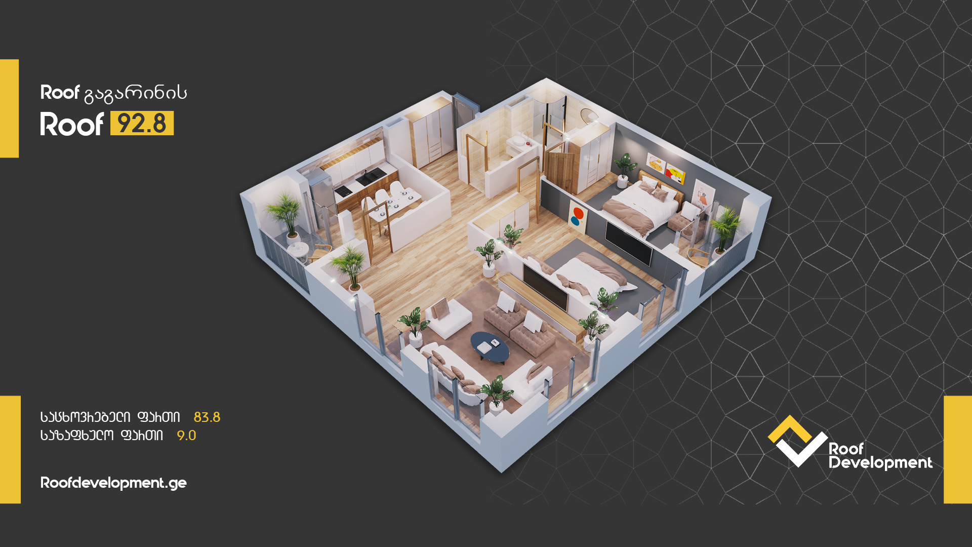 საცხოვრებელი ფართი: 83.4 კვ.მ