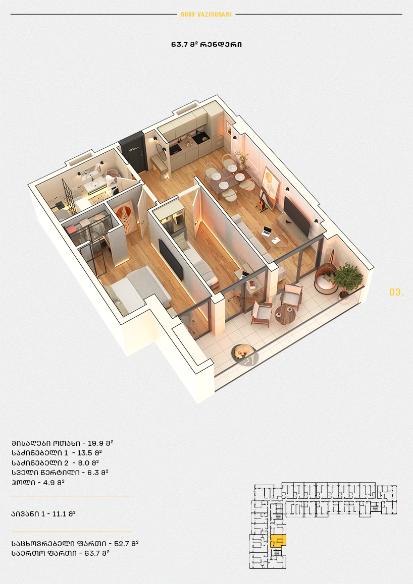 საერთო ფართი: 63.5 კვ.მ