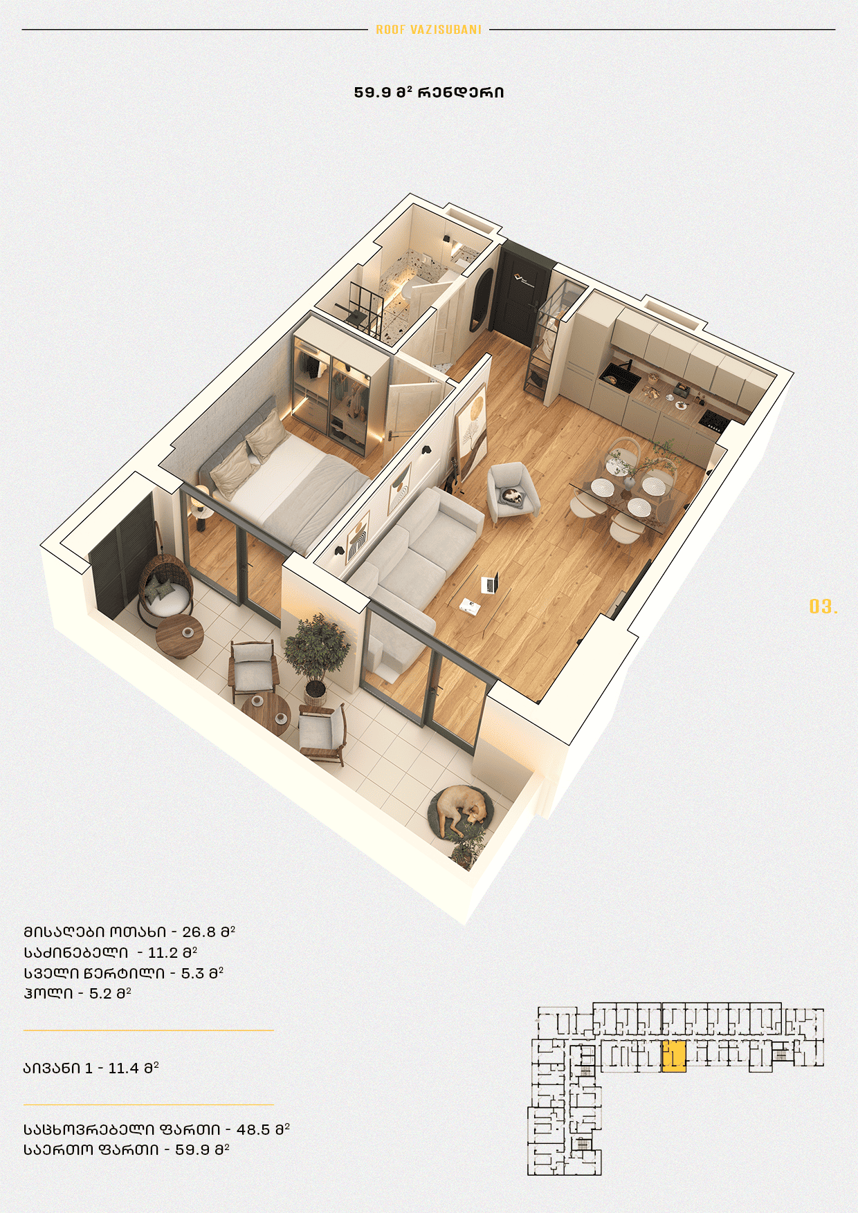 საერთო ფართი: 59.6 კვ.მ